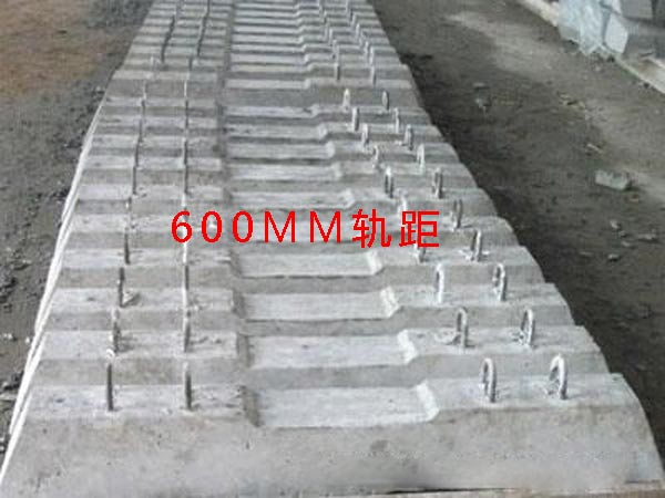 水泥轨枕常用轨距有600mm、762 mm、900 mm。适用钢轨型号有12kg,15kg,18kg,22kg,24kg,30kg,38kg,钢轨的型号不一样,水泥枕木的尺寸也不一样。